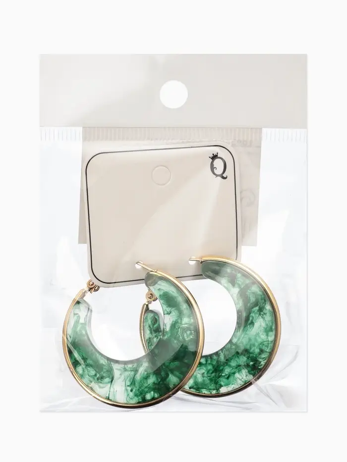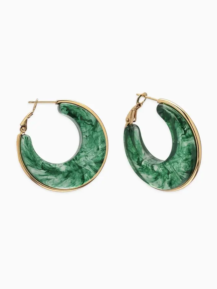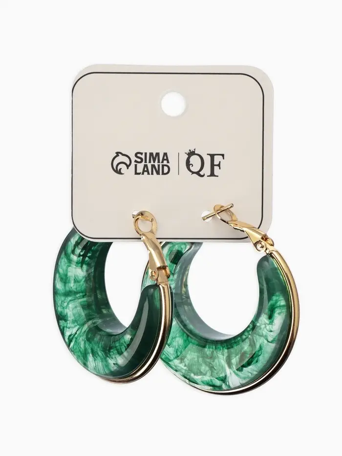 Серьги-кольца акрил "Тренд", цвет изумрудный в золоте