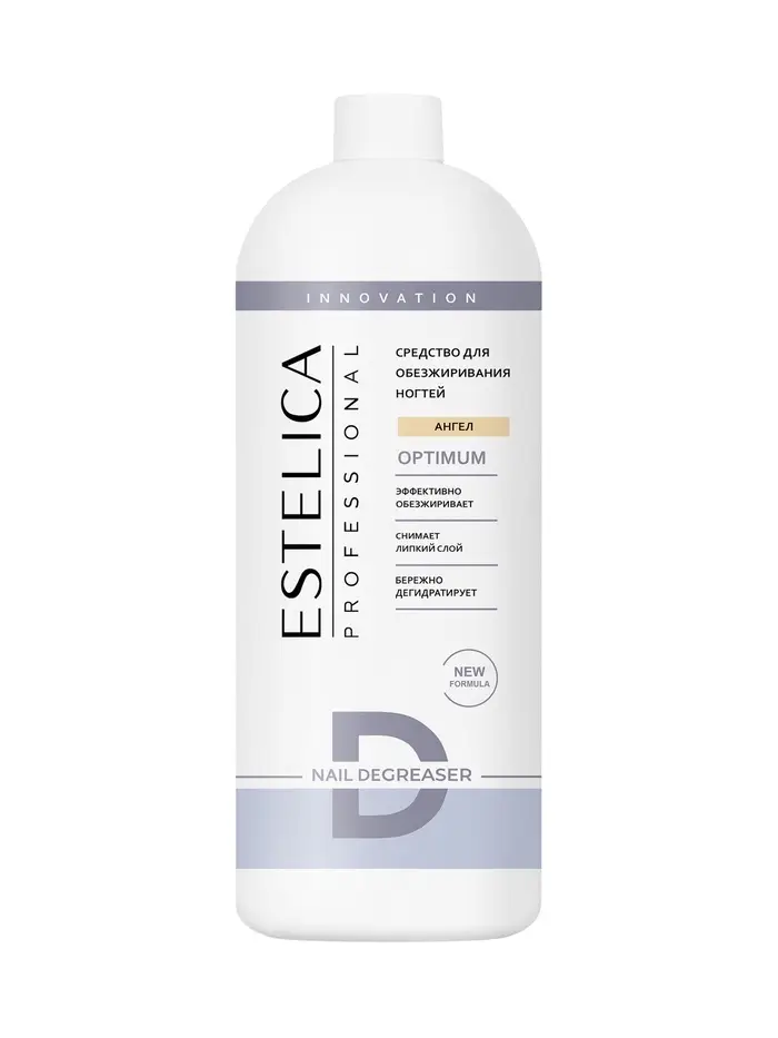 ESTELICA PROFESSIONAL OPTIMUM «Ангел», средство для обезжиривания и снятия липкого слоя 1000 мл (6 шт.) — профессиональное средство, обеспечивающее надёжное сцепление материалов с ногтевой пластиной и предотвращающее сколы и отслоения покрытия. Эффективно удаляет дисперсионный (липкий) слой и дегидратирует ногтевую пластину, делая его идеальным для работы с натуральными и искусственными ногтями перед нанесением акрила, геля или лака.