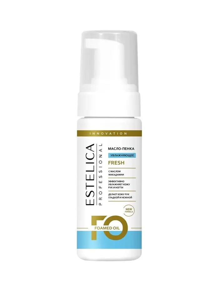 ESTELICA PROFESSIONAL FRESH, масло-пенка для рук и ногтей 150 мл (пенный дозатор) — увлажняющее и тонизирующее средство с маслом макадамии, которое защищает кожу от сухости, обезвоживания и появления трещин. Уникальная формула масло-пенки нормализует водный баланс кожи, обладает омолаживающим эффектом и обогащает её витаминами и микроэлементами.