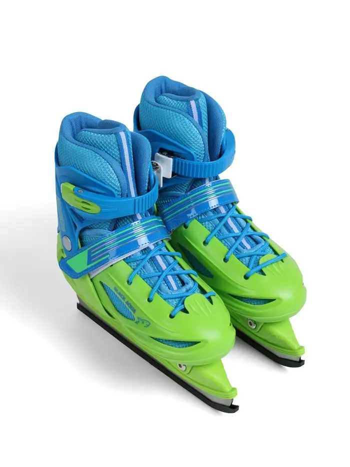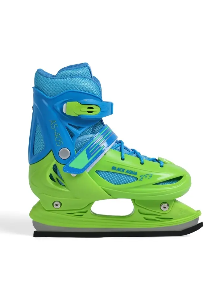 Коньки детские раздвижные BlackAqua, р. 34-37, для фитнеса, зелёные, синие