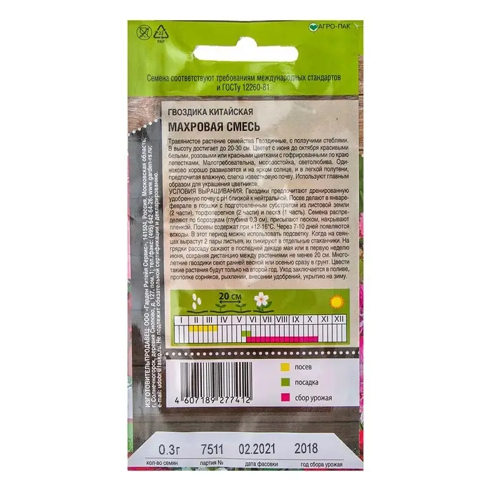 Семена цветов Гвоздика "Китайская" махровая смесь, О, 0,3 г