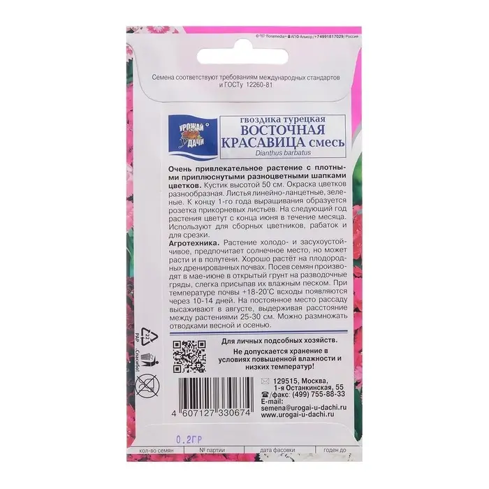 Семена цветов Гвоздика Турецкая "ВОСТОЧНАЯ КРАСАВИЦА", смесь, 0,2 г