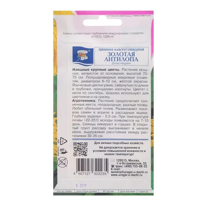 Семена цветов Цинния "ЗОЛОТАЯ АНТИЛОПА", 0,2 г