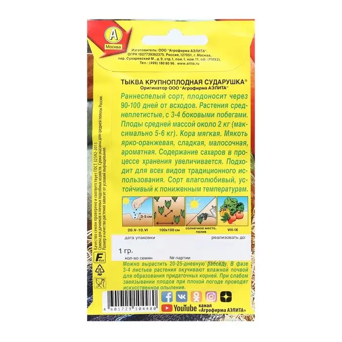 Семена Тыква "Жемчужина", мускатная, 1,0 г