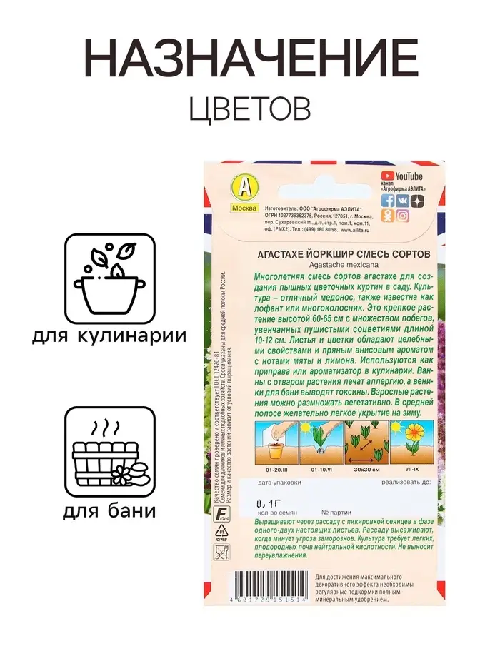Семена Цветов Агастахе "Йоркшир", смесь сортов, 0,1 г