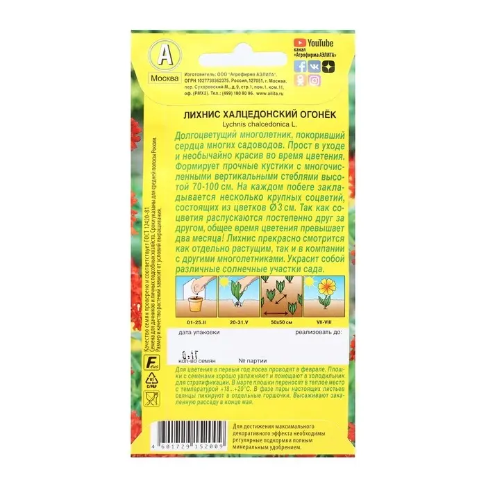 Семена Цветов Лихнис "Огонек", 0,1 г