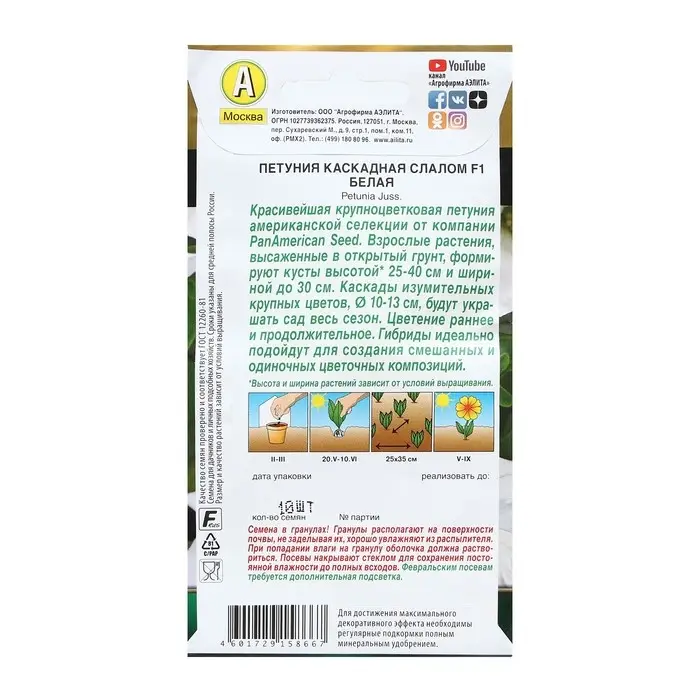 Семена Цветов Петуния "Каскадная слалом", F1, белая, 10 шт