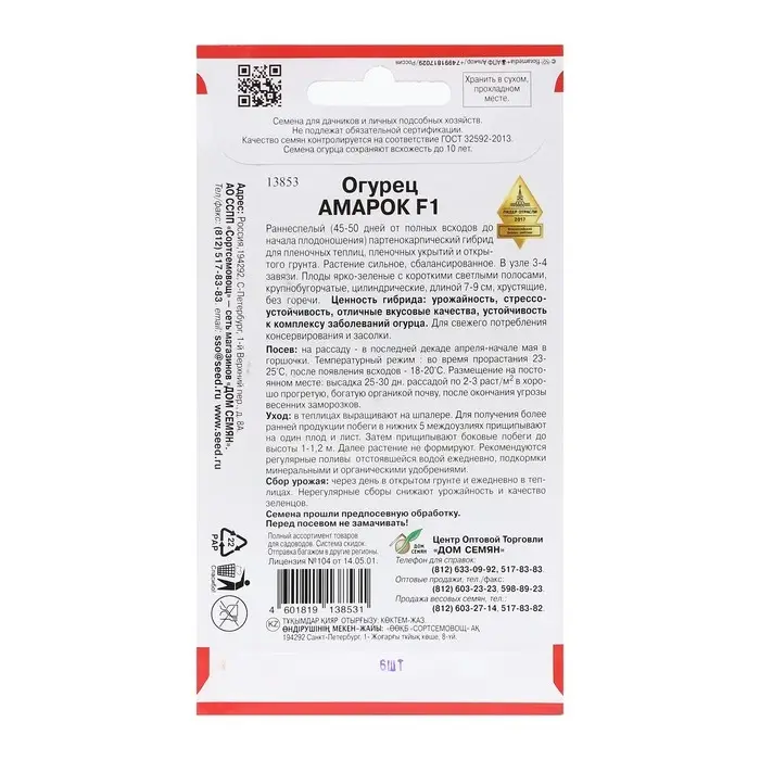 Семена Огурец "Амарок", F1, 6 шт