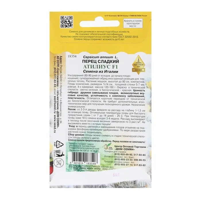 Семена Перец сладкий "Атилиус", F1, 5 шт