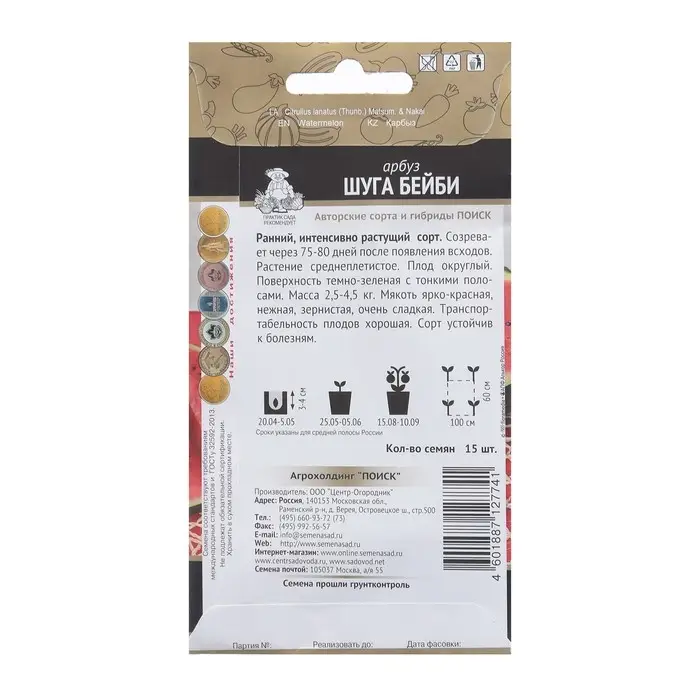 Семена Арбуз "Уральский Скороспел", F1, набор 5 шт