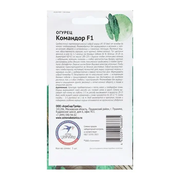 Семена Огурец "Командор", 5 шт