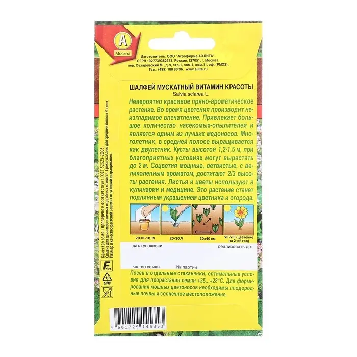Семена Шалфей мускатный Витамин красоты Травы-медоносы Ц/П 0,2г