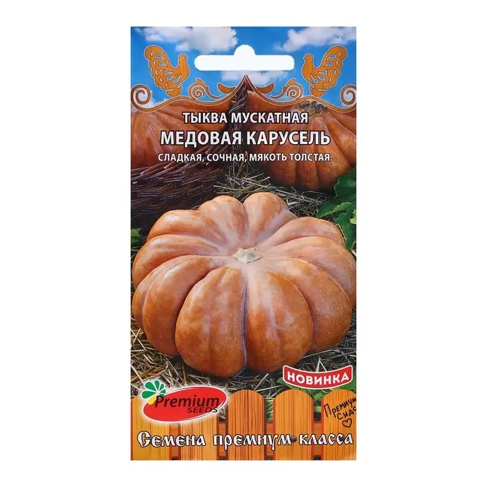 Полная карусель витаминов и каротина! Среднеспелый, устойчив к болезням, высокоурожайный, плетистый сорт. Плоды крупные, транспортабельные, плоскоокруглые, сегментированные, массой до 9кг. Мякоть оранжевая, толстая, вкусная, сладкая, с высоким содержанием каротина и прекрасными диетическими и лечебными свойствами. Используется для всех видов переработки, а также для заморозки.Агротехника:Высевают тыкву, когда почва прогреется до 10-12‘С (с середины мая). Семена заделывают на глубину 4-6 см. Уход за растениями заключается в прищипке боковых плетей, прищипке главного стебля (после завязывания нескольких плодов), поливе, прополке, рыхлении и обязательной подкормки. Для лучшего образования придаточных корней растения слегка окучивают.