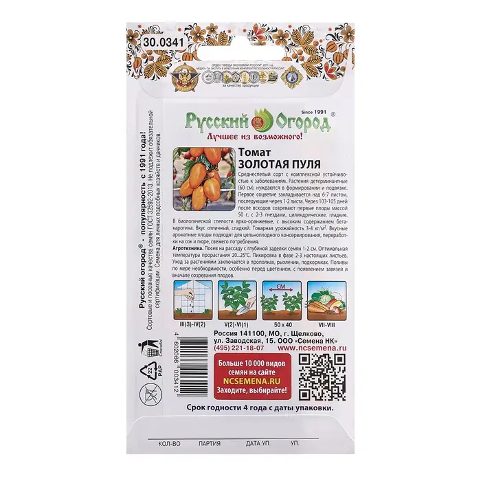 Семена Томат "Золотая пуля", ц/п, 0,1 г