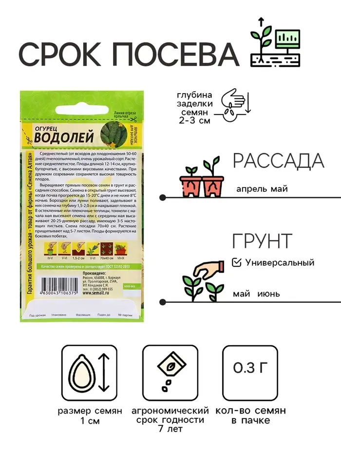 Семена Огурец "Водолей", 0,3 гр.