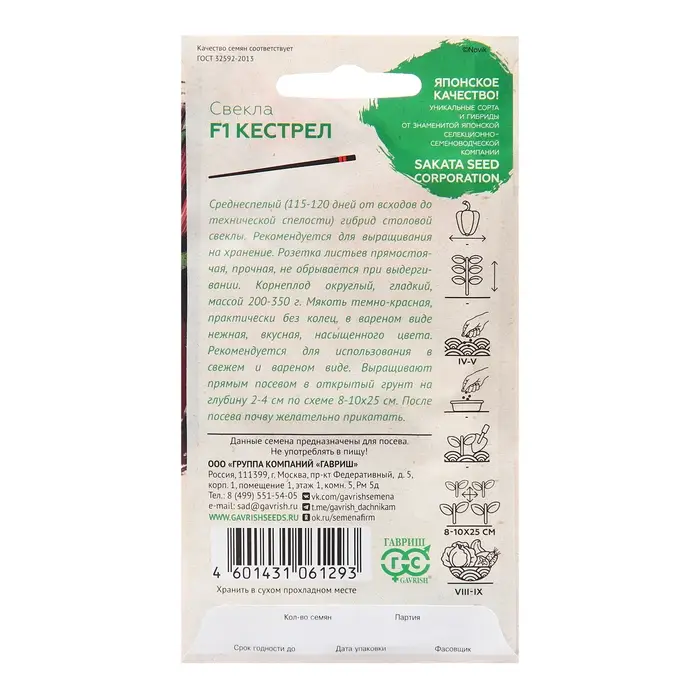 Семена Свекла "Кестрел", F1, ц/п, 1 г