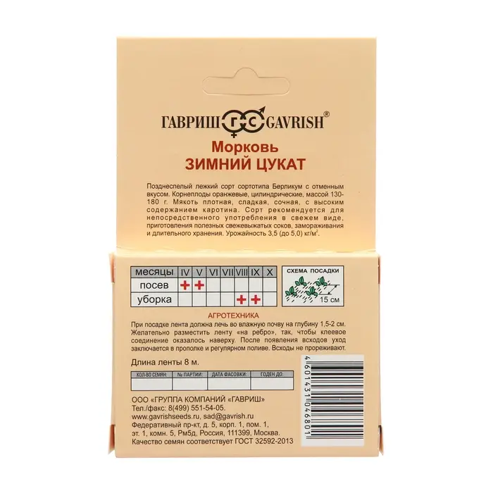 Семена Морковь на ленте "Зимний цукат", 8 м