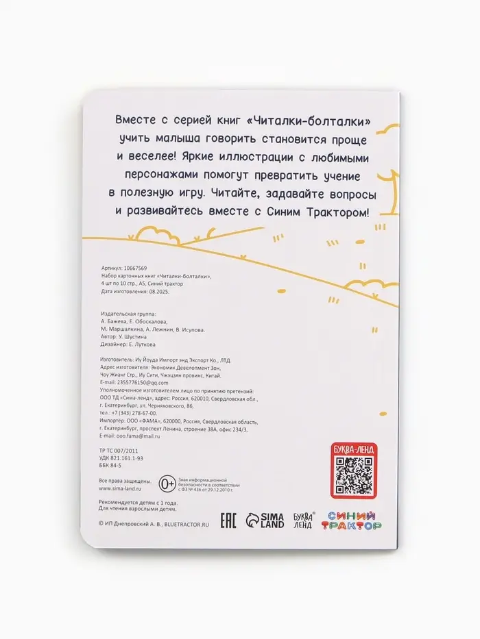 Познакомьте малыша с весёлыми стишками и добрыми героями ! Этот набор создан для того, чтобы читать вслух, смеяться, повторять строчки и вместе мечтать о приключениях синего трактора и его друзей. Картонные страницы выдержат даже самые активные детские ручки — от первых дней знакомства с книгой до уверенного листания «сам».