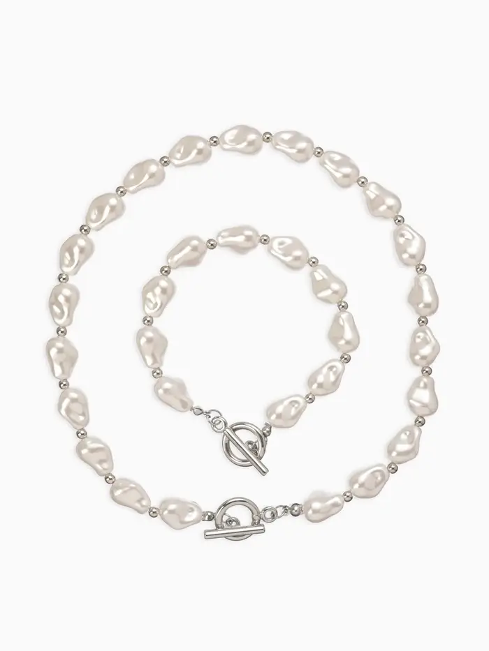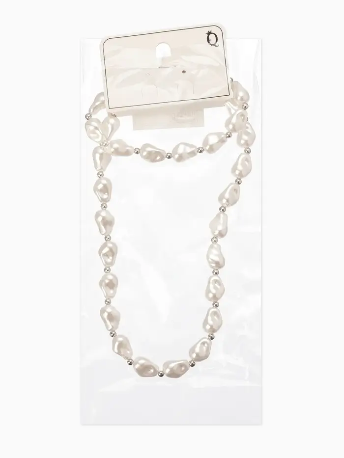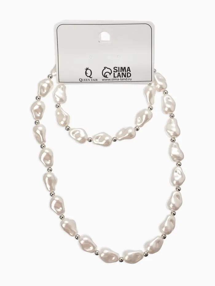 Набор 2 пред-та: бусы,браслет "Жемчуг барочный", капля, 40/18см, цвет белый в серебре