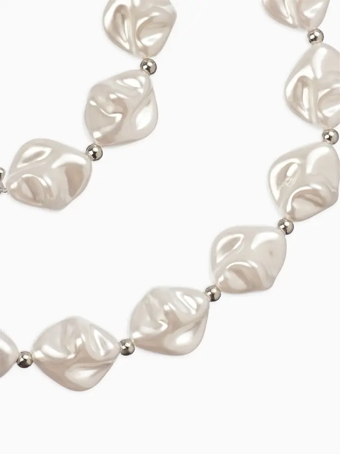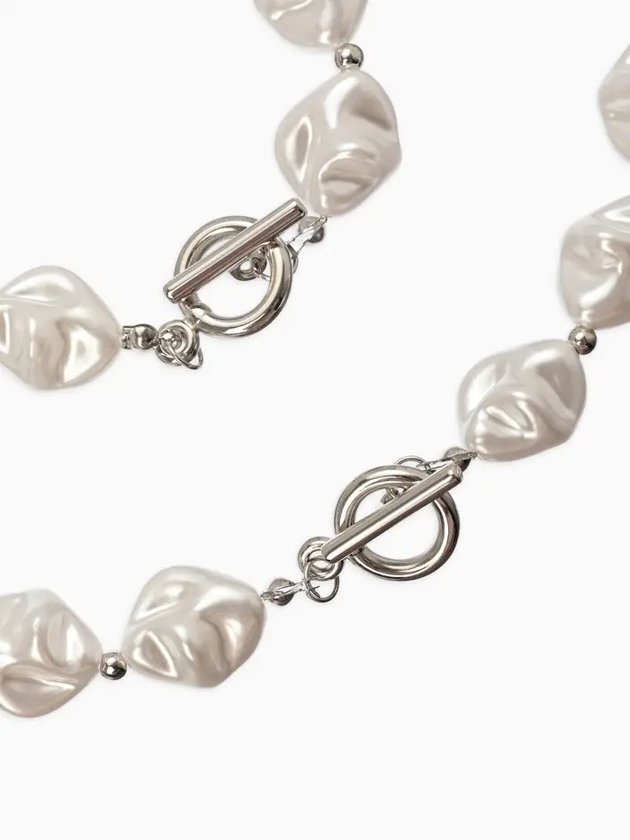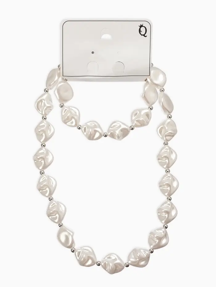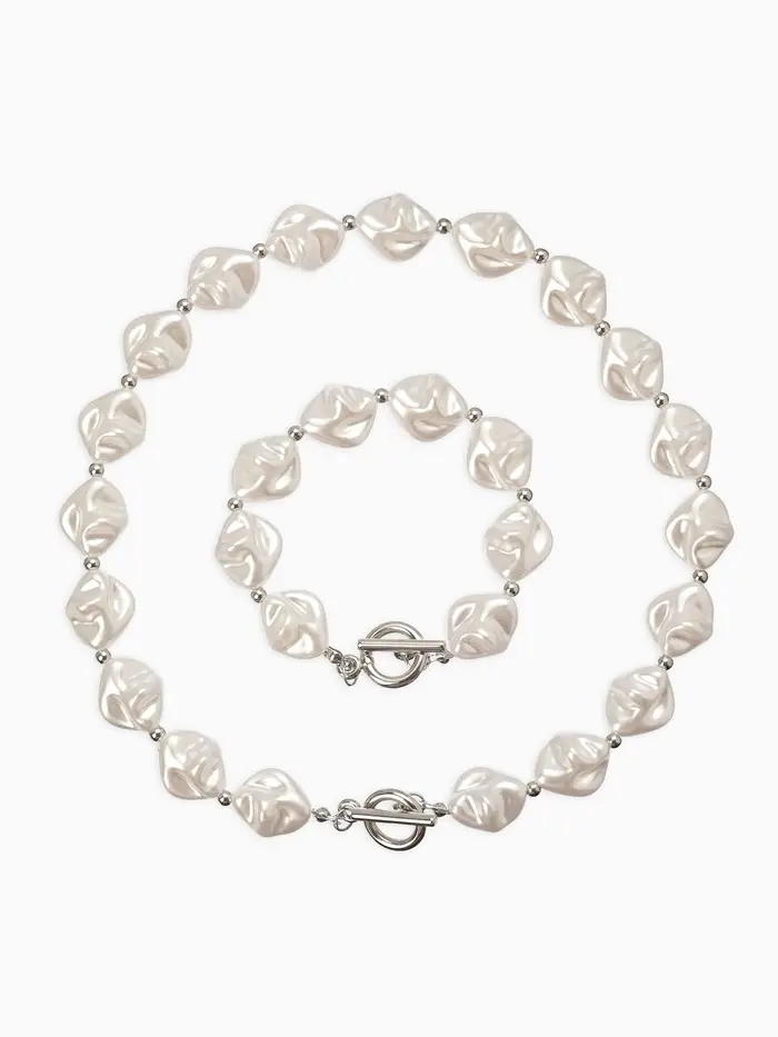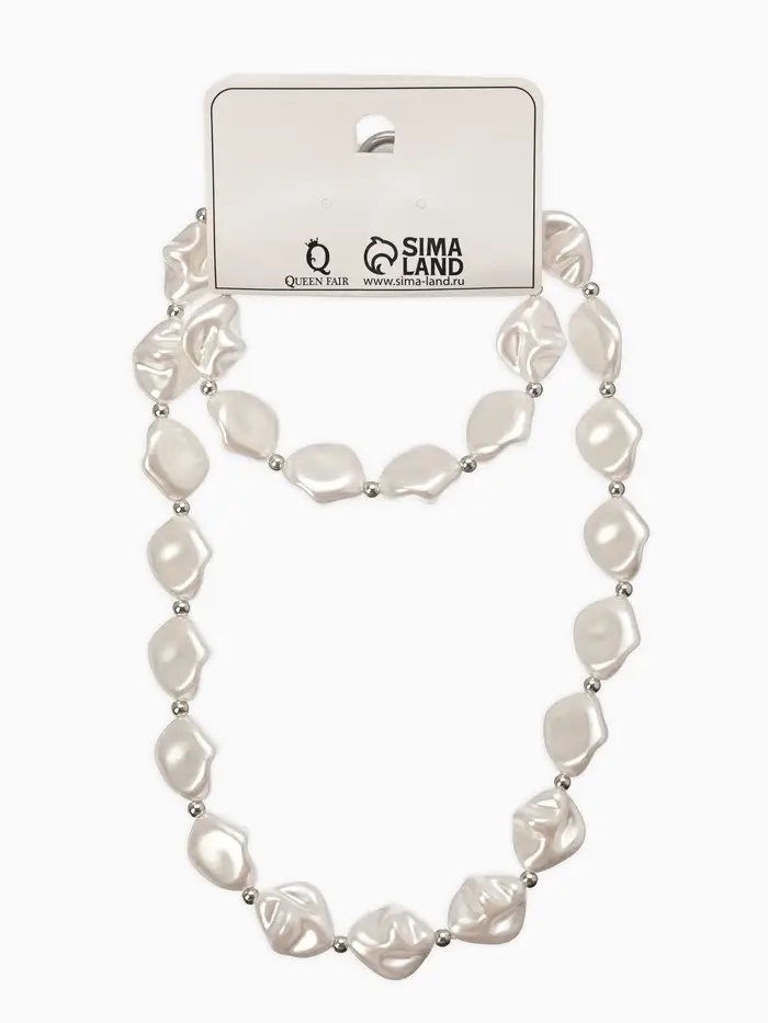 Набор 2 пред-та: бусы,браслет "Жемчуг барочный", ромб. 40/18см, цвет белый в серебре