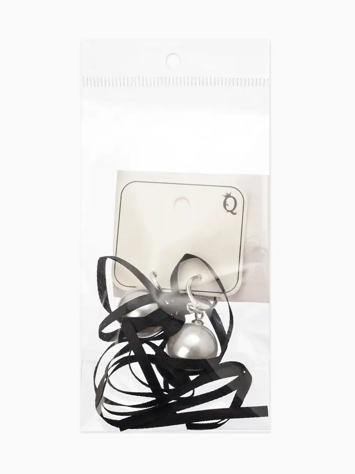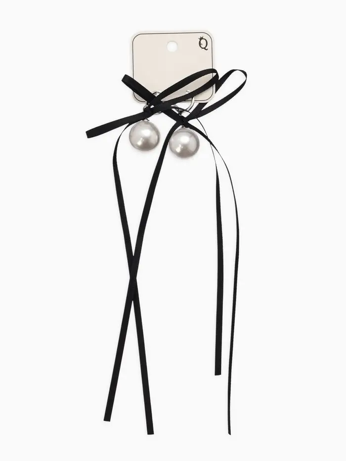 Серьги жемчуг "Бусина с бантиком", №16, цвет бело-чёрный в серебре