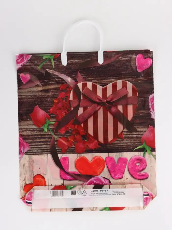 Пакет "С любовью, полиэтиленовый с вырубной ручкой, пласт. 38х44 см, 90 мкм