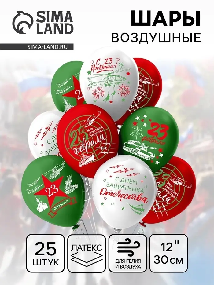 Воздушный шар латексный 12" «Праздник 23 Февраля», 25 шт.