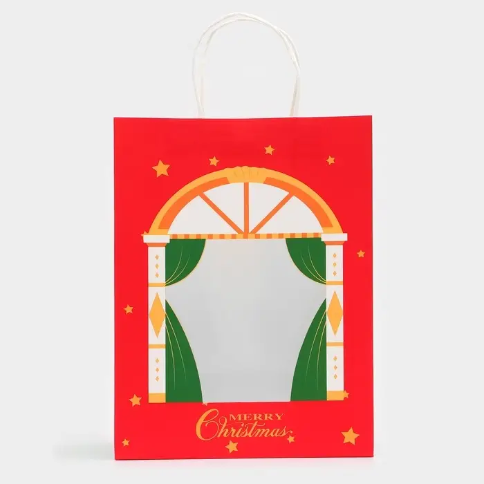 Пакет подарочный бумажный с окном «Театр» 26×35×16 см, крафт красный