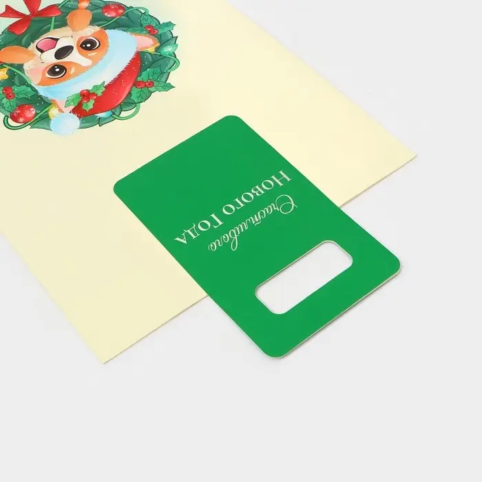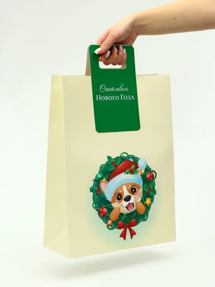 Пакет подарочный с вырубной ручкой «Новогодний корги» 30×40×12 см, зеленый