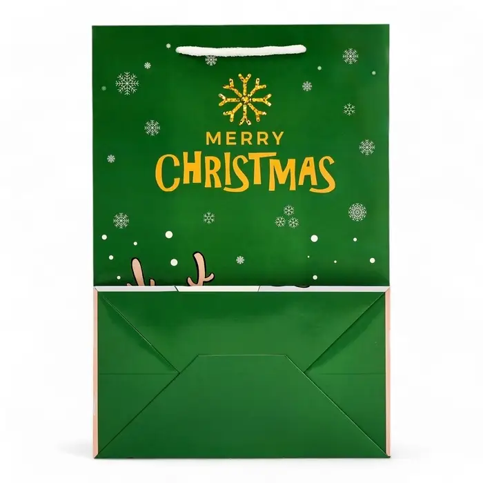 Пакет ламинированный подарочный с окном «Дед мороз» 24×35×14 см, зелёный