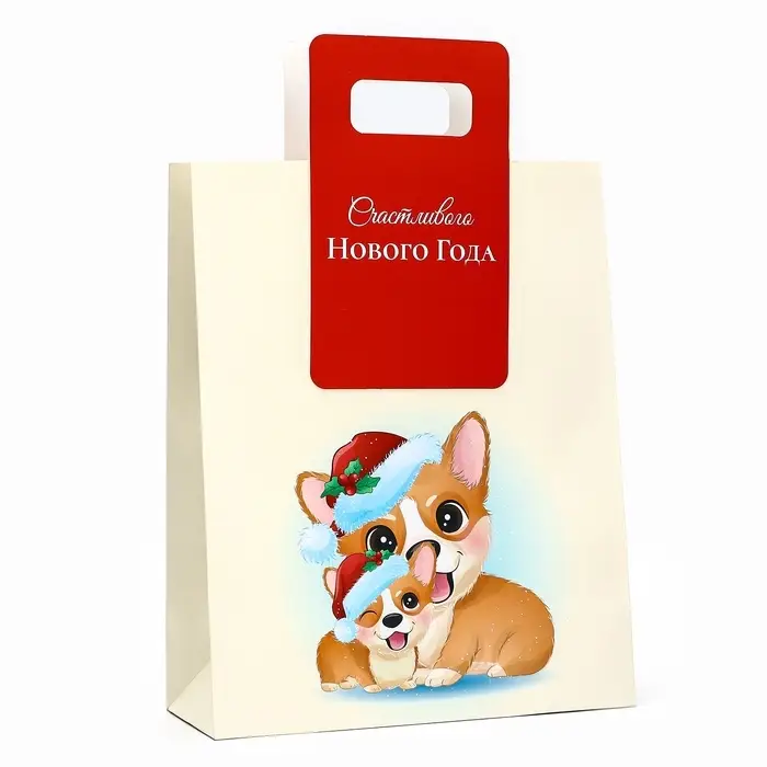 Пакет подарочный с вырубной ручкой «Корги» 26×32×10 см, красный