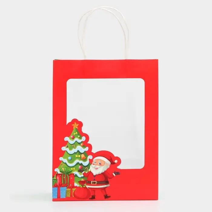 Пакет подарочный с окном «Дед мороз» 19×26×13 см, Красный
