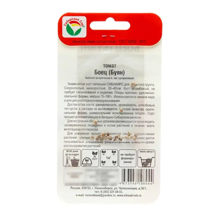Семена Томат "Боец (Буян)", ранний, детерминантный,низкорослый, 20 шт