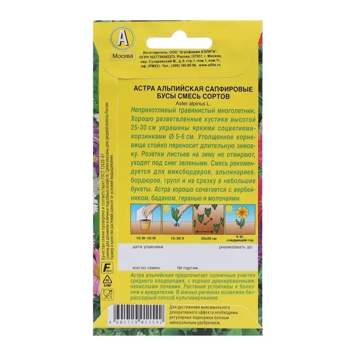 Семена цветов Астра альпийская "Сапфировые бусы", смесь окрасок, Мн, 0,1 г