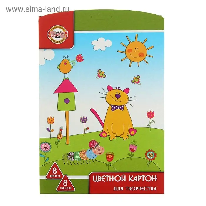 Картон цветной А4, 8 листов, 8 цветов, Koh-I-Noor, 210 г/м², ламинированный