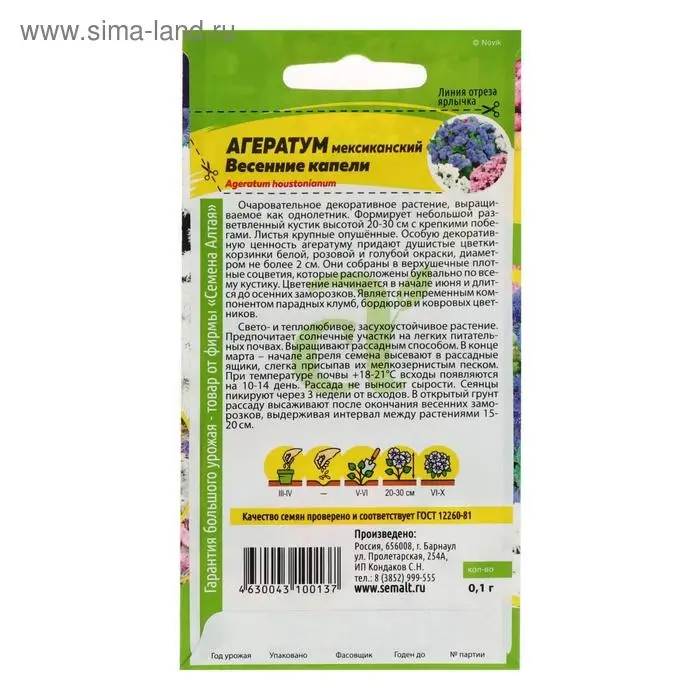 Семена цветов Агератум "Весенние капели", 0,1 г