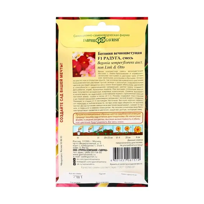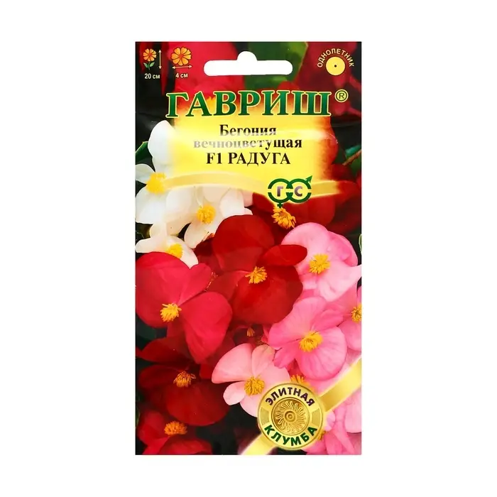 Семена цветов Бегония "Радуга", ц/п, F1, вечноцветущая, смесь, гранулы, 7 шт