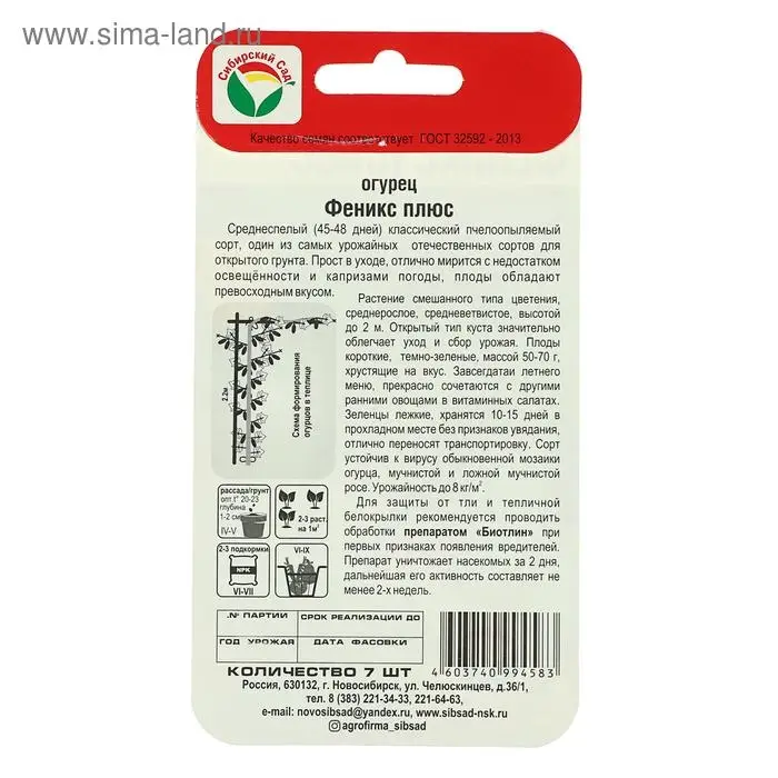 Семена Огурец "Сибирская Гирлянда" F1 скороспелый, партенокарпический, 5 шт