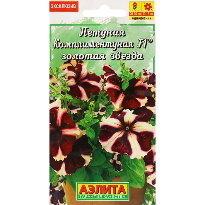 Стильное, эффектное и очень изящное растение. Это романтичный, практичный выбор и комплимент на языке цветов. Комплиментуния F1 – эксклюзивный гибрид (новая петуния) с крупными цветками и суперобильным цветением. Украсит любой цветник и будет долго дарить радость и восхищение. Благодаря наличию гена мужской стерильности семян не завязывает, направляя всю энергию на формирование новых цветков. Форма растений кустовая, со склонностью к трейлингу: ширина больше высоты. Высота 20-25 см, ширина 25-30 см. Быстро разрастается. Растения устойчивы к болезням, выдерживают дождливую и ветреную погоду, переносят кратковременные заморозки до –5°С и экстремальную жару до +40°С без потери декоративности.