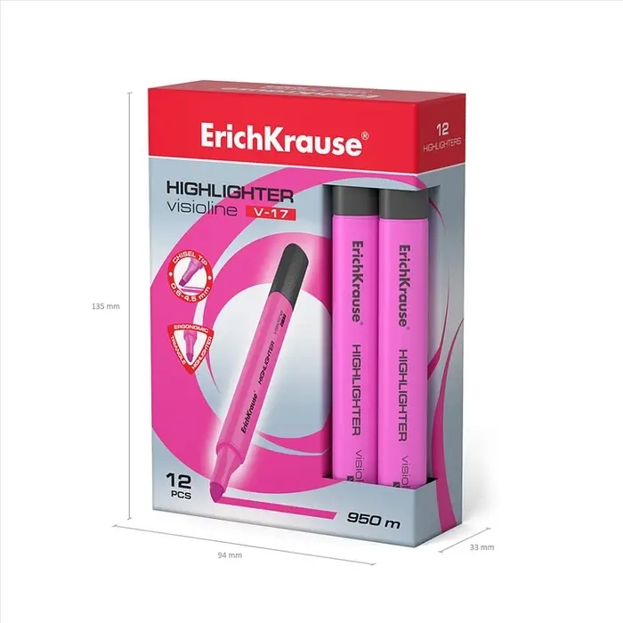 Маркер текстовыделитель ErichKrause Visioline V-17, 0.6-4.5 мм, чернила на водной основе, розовый