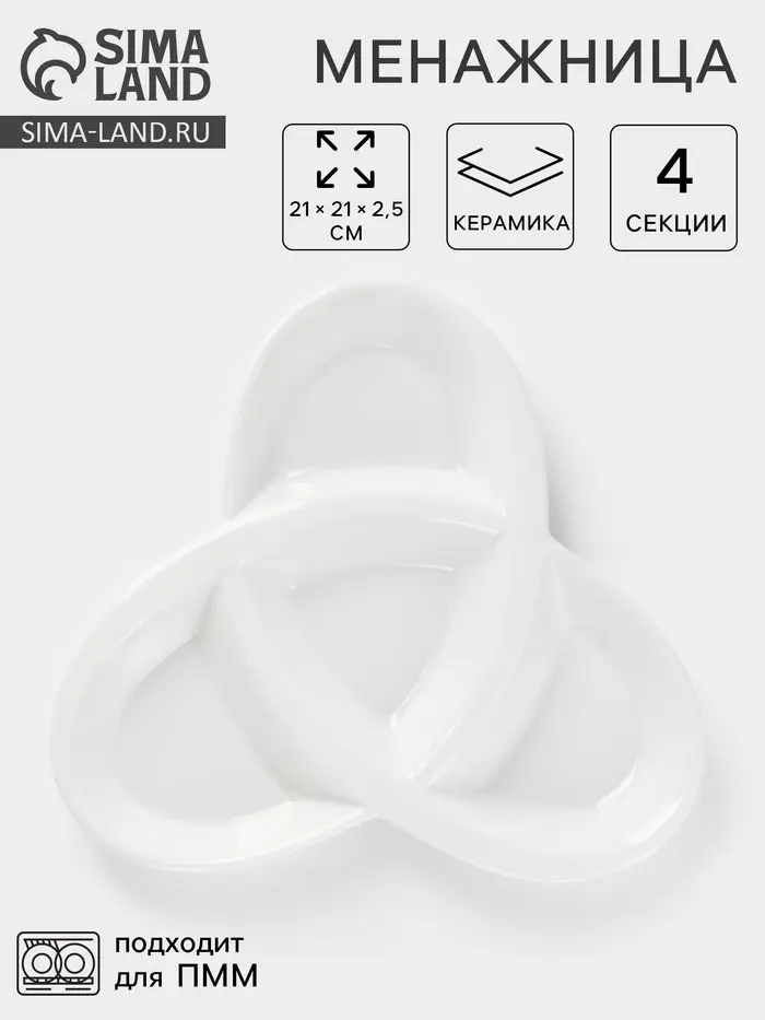 Менажница керамическая 4 ячейки «Трикветр», 21×2.5 см