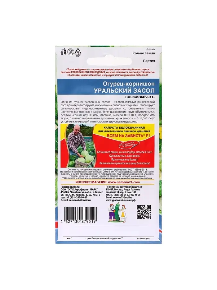 Семена Огурец "Уральский засол - корнишон", 12 шт