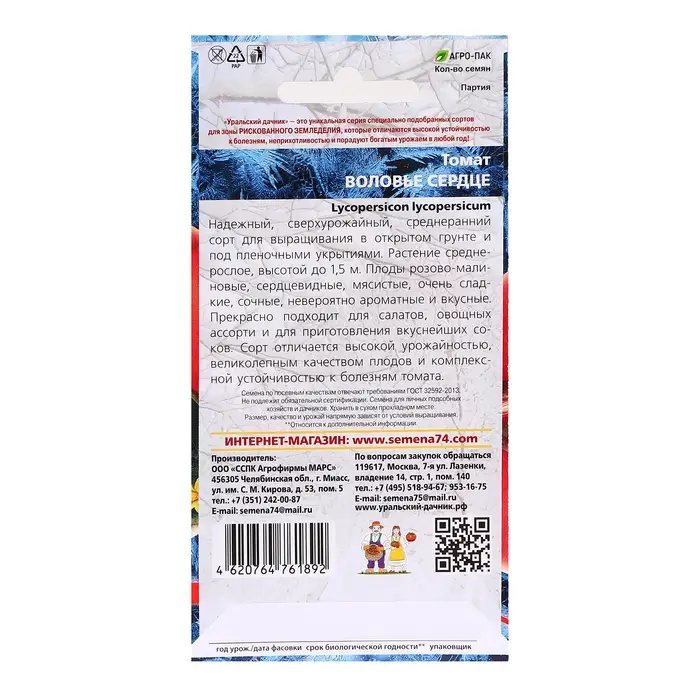Урожайность 3,5 кг/м2. Посев на рассаду - в конце марта - начале апреля. Пикировка - в фазе первого настоящего листа.