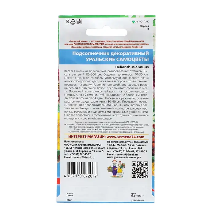 Семена Цветов Подсолнечник декоративный "Уральские Самоцветы" ,0 ,45 г ,