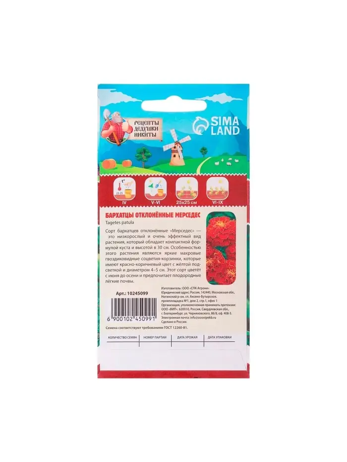 - Семена Бархатцев "Мерседес" — это великолепный выбор для тех, кто хочет добавить яркие акценты в свой сад. Эти цветы с их насыщенными оттенками и изысканными формами создадут атмосферу уюта и красоты. Бархатцы "Мерседес" цветут с начала лета до первых заморозков, радуя глаз своим великолепием. Яркие цветы привлекают пчел и бабочек, способствуя опылению.
