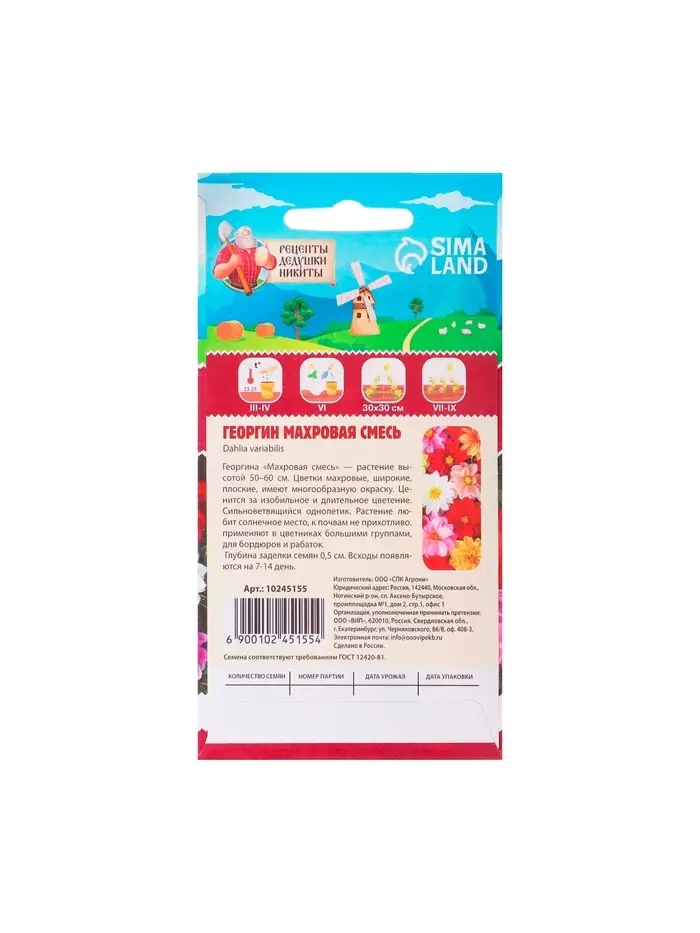 Семена цветов Георгина Веселые ребята, О, 0,2г