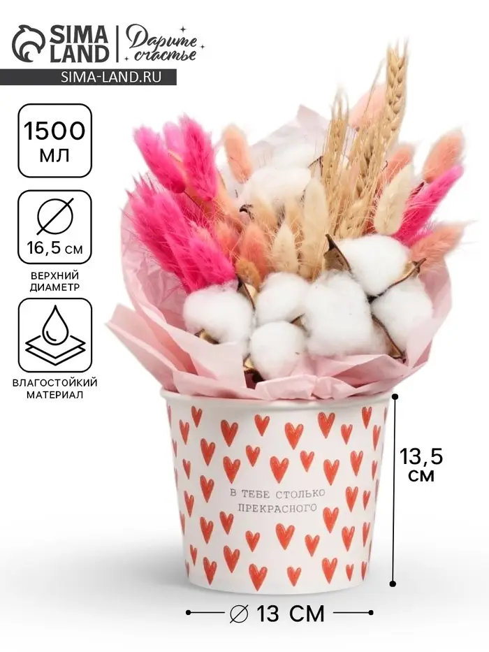 Стакан для цветов 1.5 л, «Сердца»