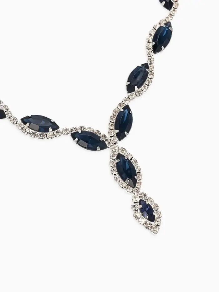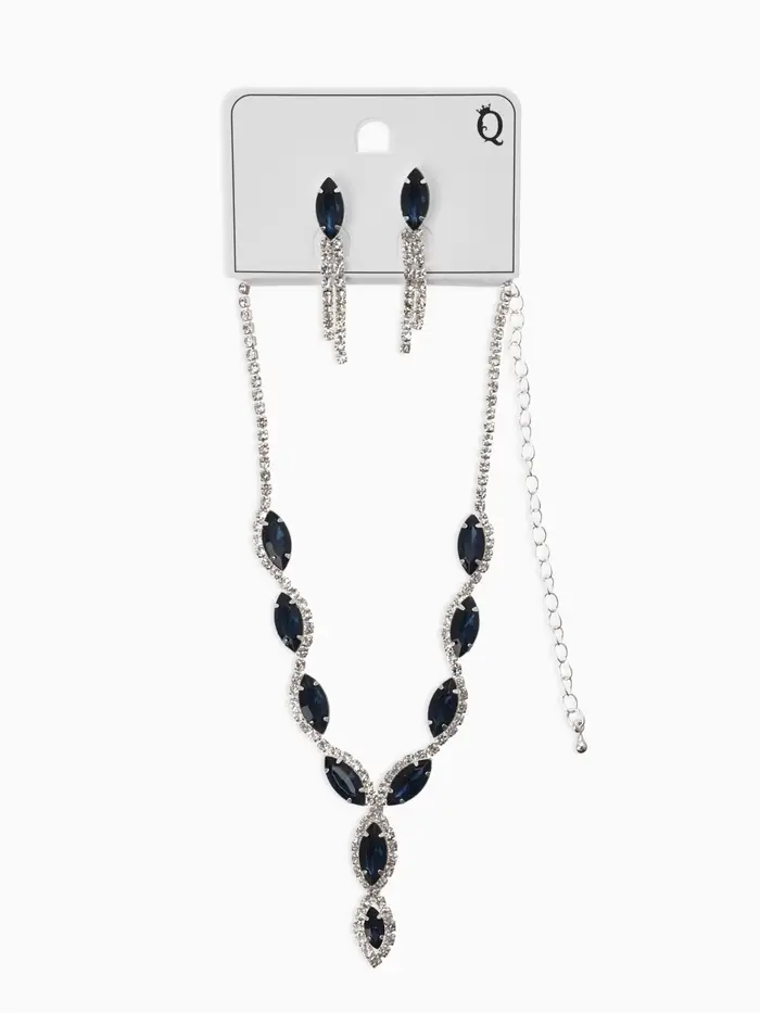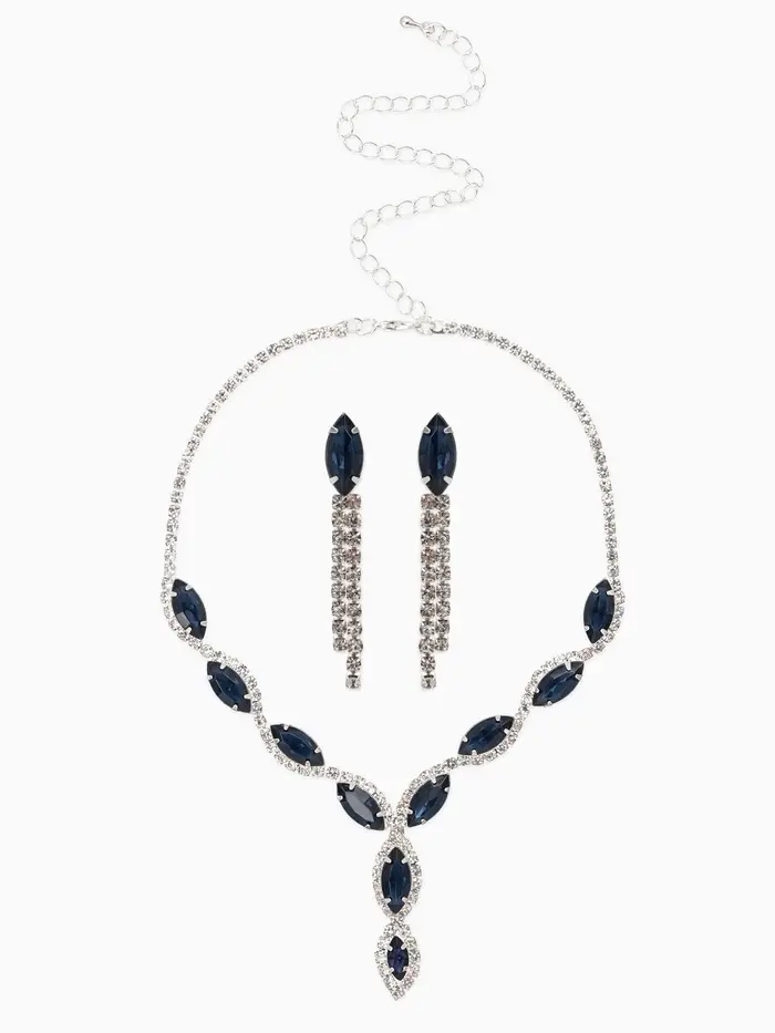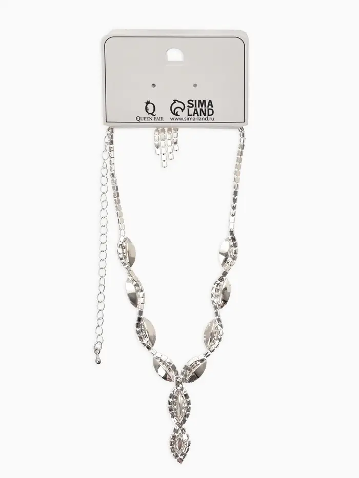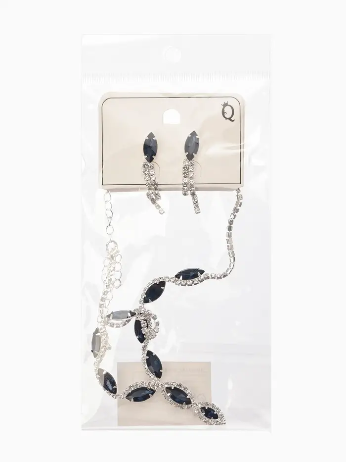 Набор 2 пред-а: серьги, колье "Вечерний шик" лепестки, цвет бело-тёмно-синий в серебре