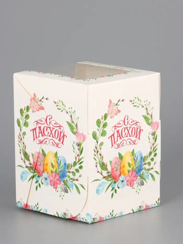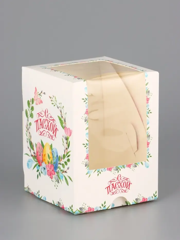 Коробка подарочная пасхальная с окном «Пасхальный венок» 9.5×9.5×12.5 см