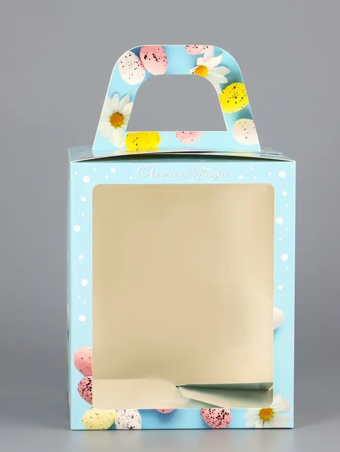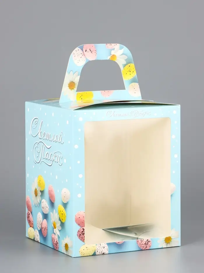 - Окно для демонстрации праздничного сюрприза: Прозрачная вставка позволяет показать содержимое, делая акцент на самом подарке. Это может быть крашеное яйцо, маленький кулич, праздничный десерт или украшение.